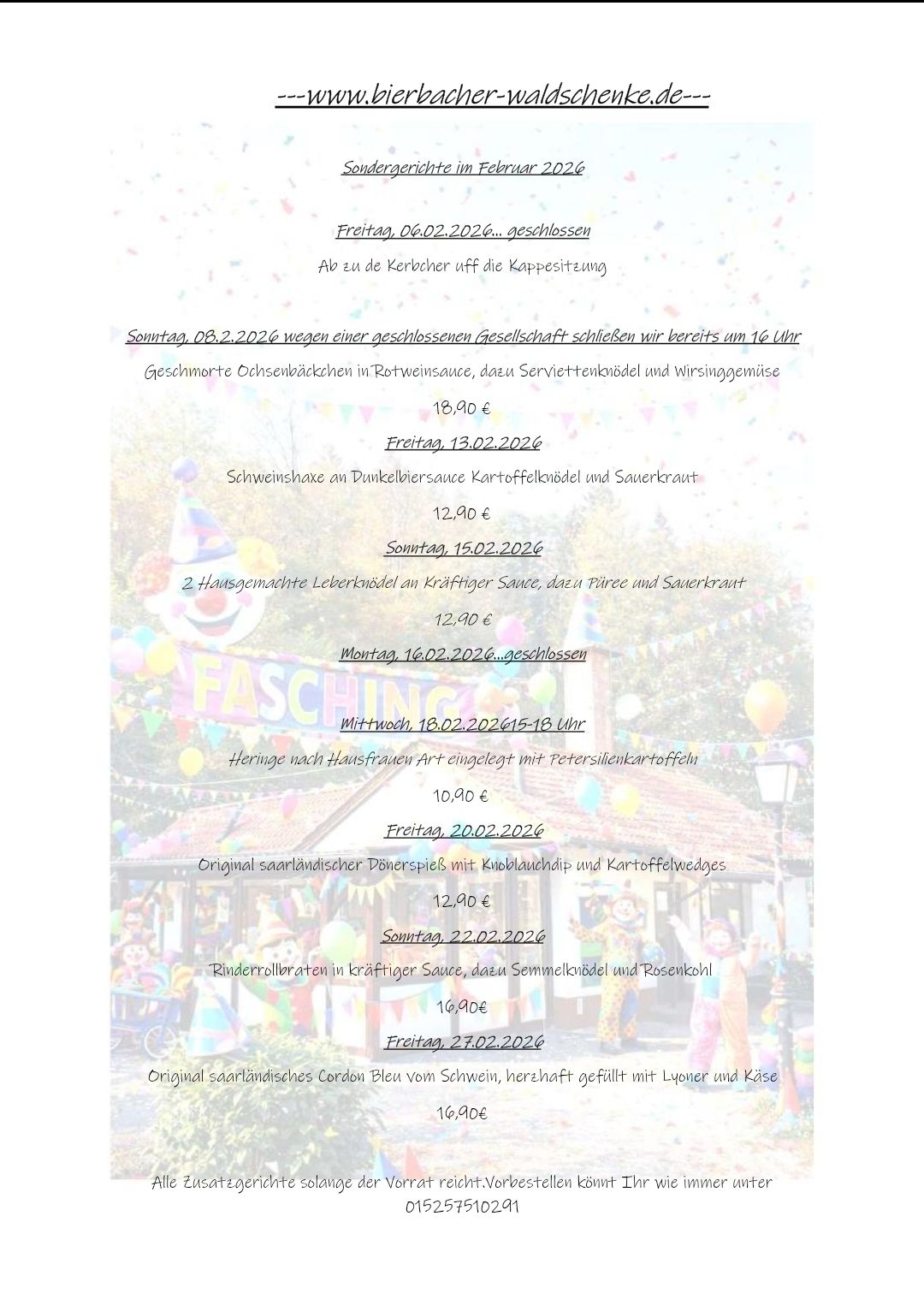 Zum Vergrößern bitte auf die Speisekarte klicken.